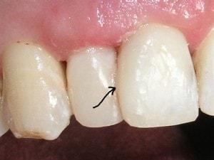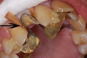 Arrow shows a distal area which needs to be shaped better. When patient returns I will improve on the contour with a #15 blade.