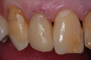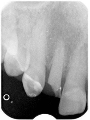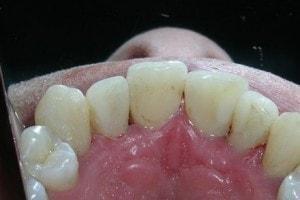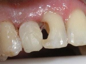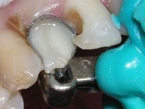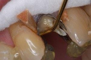 Matrix held against the mesial of #6 while the first increment of flowable was placed. This procedure locks the matrix against the mesial of #6.