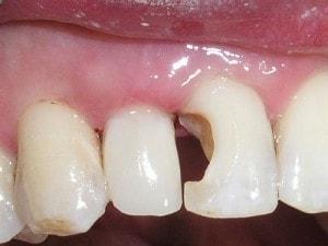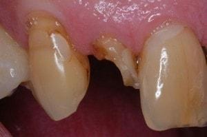 Crown would require root canal and post for retention. Unfortunately, there is no ferrule for a crown.
